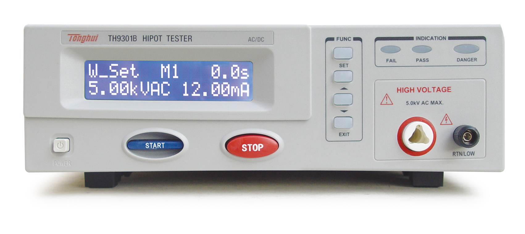 ■?TH9301系列交直流耐壓絕緣測試儀是一款小功率經(jīng)濟型智能安規(guī)測試儀器。體積小、重量輕、外形美觀、操作 簡便。