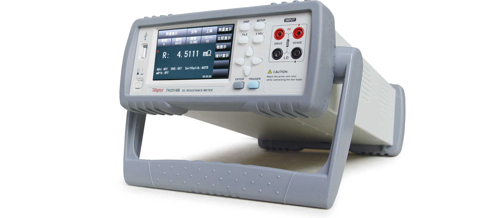 ■ TH2516B直流電阻測試儀采用當(dāng)前主流的32bits CPU和高密度SMD貼裝工藝,帶觸摸功能的24位色4.3英寸彩色液晶屏,界面清爽、操作便捷;0.1%的最高電阻測量精度及1uΩ最小電阻分辨率,其適用于繼電器接觸電阻、接插件接插電阻、導(dǎo)線電阻、印制板線路及焊孔電阻等;其超高速的測試速度以及通過handler接口可以輸出3檔不同邊界的比較結(jié)果信號,便于生產(chǎn)線上的自動(dòng)化操作。