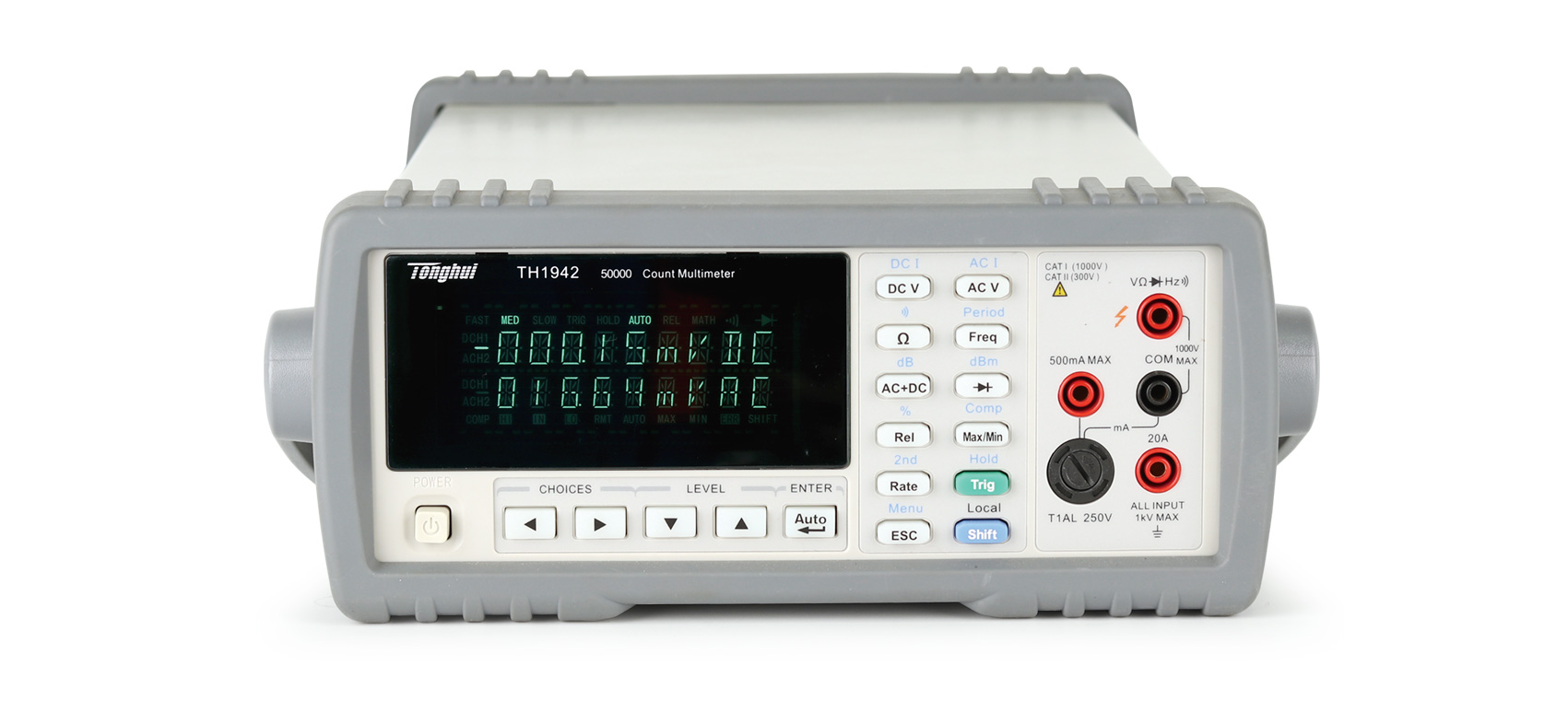 TH1942 四位半數(shù)字多用表簡介■ TH1941型 4 1/2位真有效值數(shù)字多用表及TH1942型50,000讀數(shù)數(shù)字多用表是一種多功能、高性價比的電壓/電流/電阻測試儀器。儀器可以比同檔產品高數(shù)倍的測量速度進行穩(wěn)定測量。提供21,000/51,000字最大讀數(shù),0.03%/0.02%的最高直流電壓準確度等一系列優(yōu)良的性能和經(jīng)濟的價格為廣大客戶提供最優(yōu)的選擇。TH1941/TH1942提供高亮度