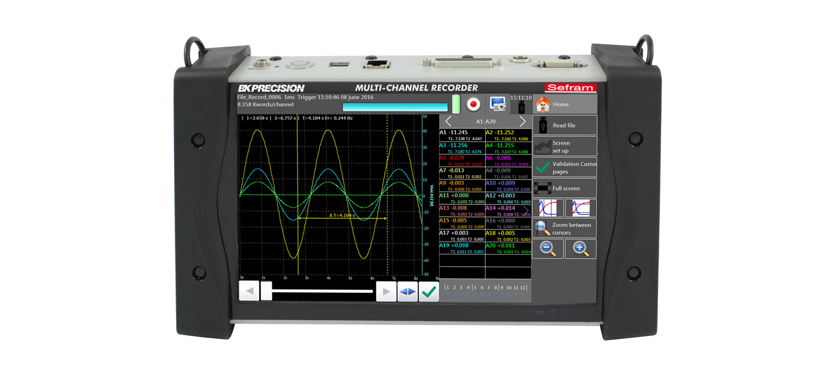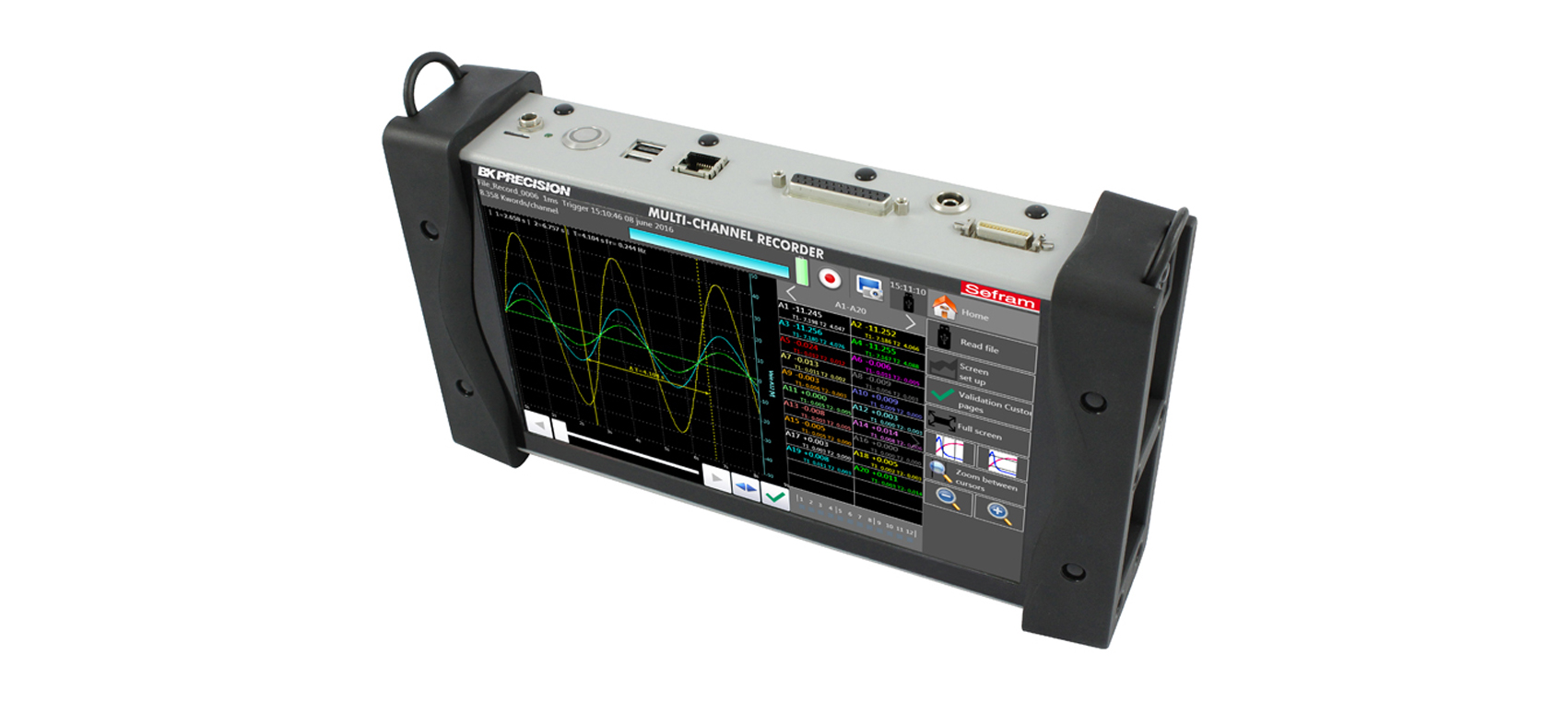 新一代的DAS 220記錄儀旨在測(cè)試您在過程中所需要記錄的參數(shù):電壓測(cè)試傳感器測(cè)試(0-10V),溫度測(cè)試(熱電偶,PT100-PT1000),電流測(cè)試(選裝分流器)電阻測(cè)試,計(jì)數(shù),頻率。您可以直觀地觀察測(cè)試結(jié)果(圖形和數(shù)值)以及在記錄儀內(nèi)部或USB存儲(chǔ)測(cè)試結(jié)果,您可以在電腦上通過使用免授權(quán)的Das Lab軟件來(lái)進(jìn)行數(shù)據(jù)轉(zhuǎn)移和處理