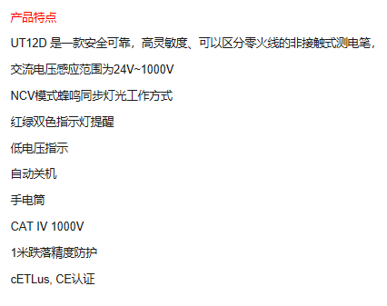 UT12D 是一款安全可靠,高靈敏度、可以區(qū)分零火線的非接觸式測電筆,