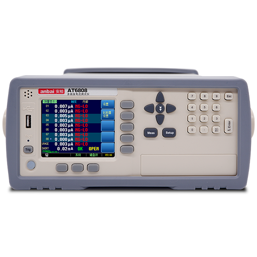 AT6808多路電阻測(cè)試儀,采用高性能ARM微處理器控制的全自動(dòng)實(shí)時(shí)檢測(cè)的微型臺(tái)式儀器。 儀器可同時(shí)對(duì)8通道漏電流,1通道未老化電流和1通道短路電流進(jìn)行測(cè)量,并同時(shí)顯示在屏幕上。