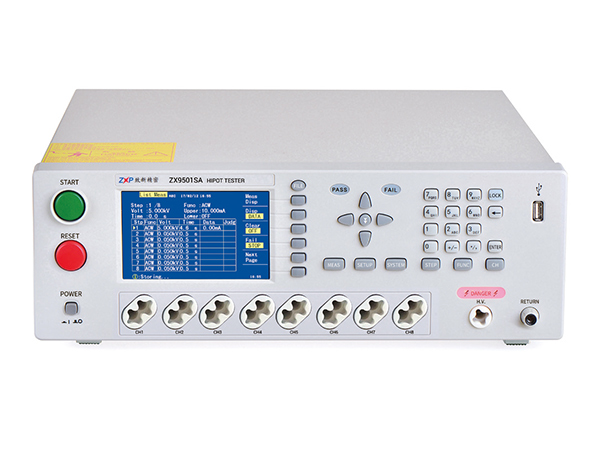 ●ZX9501SA-8:帶8路掃描功能交直流絕緣耐壓測(cè)試儀,帶測(cè)試線接觸檢查功能。