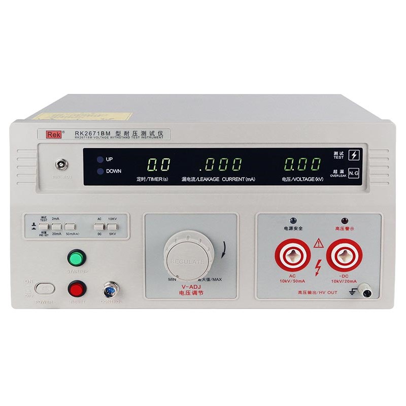 美瑞克RK2671系列耐壓測試儀是測量耐壓強度的儀器,可以直觀、準確、快速地測試各種被測對象的擊穿電壓、漏電流等電氣安全性能指標,并可以作為高壓源用來測試元器件和整機性能。