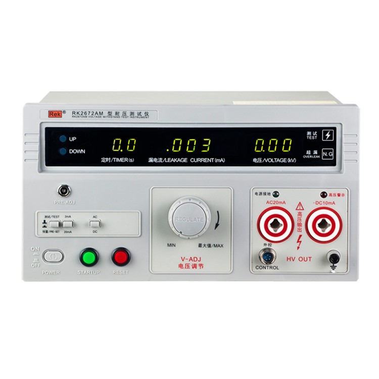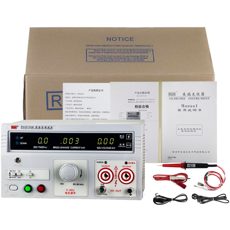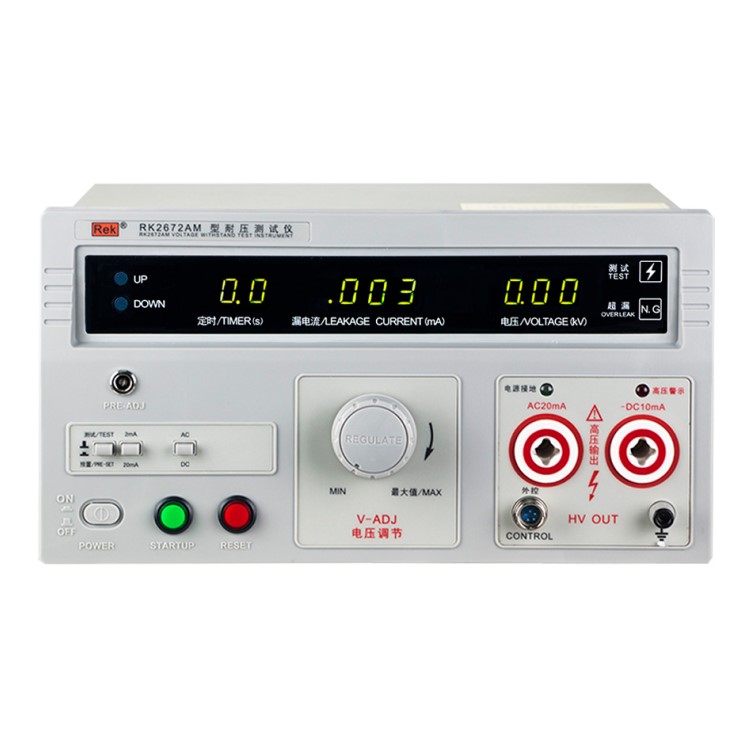 美瑞克RK2672系列耐壓測試儀是測量耐壓強度的儀器,可以直觀、準確、快速地測試各種被測對象的擊穿電壓、漏電流等電氣安全性能指標,并可以作為高壓源用來測試元器件和整機性能。