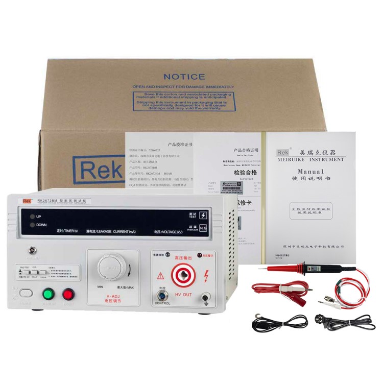 美瑞克RK2672系列耐壓測(cè)試儀是測(cè)量耐壓強(qiáng)度的儀器,可以直觀、準(zhǔn)確、快速地測(cè)試各種被測(cè)對(duì)象的擊穿電壓、漏電流等電氣安全性能指標(biāo),并可以作為高壓源用來(lái)測(cè)試元器件和整機(jī)性能。