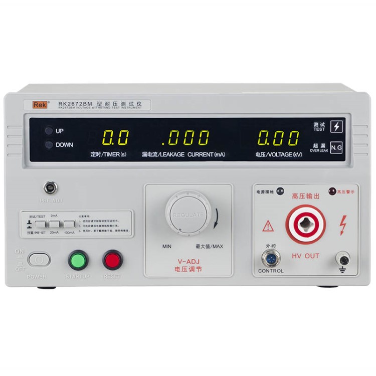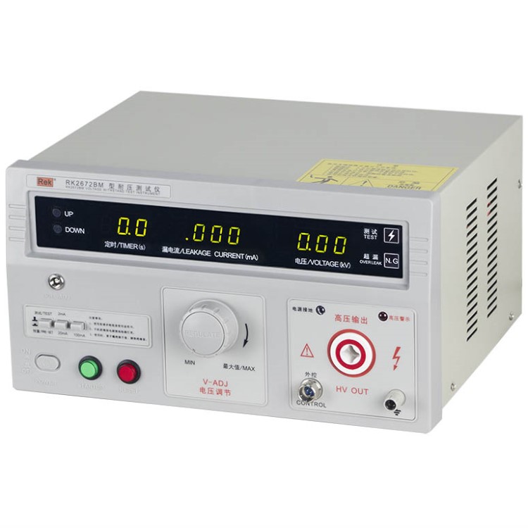 美瑞克RK2672系列耐壓測(cè)試儀是測(cè)量耐壓強(qiáng)度的儀器,可以直觀、準(zhǔn)確、快速地測(cè)試各種被測(cè)對(duì)象的擊穿電壓、漏電流等電氣安全性能指標(biāo),并可以作為高壓源用來(lái)測(cè)試元器件和整機(jī)性能。">