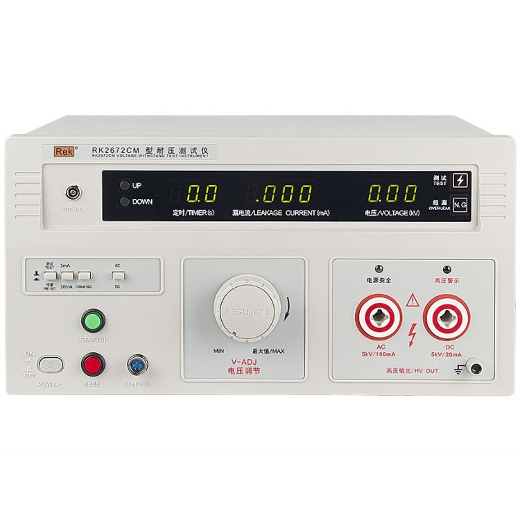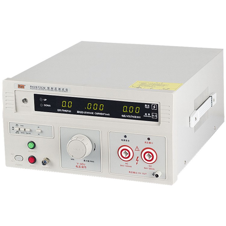 美瑞克RK2672系列耐壓測試儀是測量耐壓強度的儀器,可以直觀、準(zhǔn)確、快速地測試各種被測對象的擊穿電壓、漏電流等電氣安全性能指標(biāo),并可以作為高壓源用來測試元器件和整機性能。