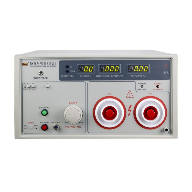 美瑞克RK2674系列耐壓測試儀是測量耐壓強(qiáng)度的儀器,可以直觀、準(zhǔn)確、快速地測試各種被測對象的擊穿電壓、漏電流等電氣安全性能指標(biāo),并可以作為高壓源用來測試元器件和整機(jī)性能。