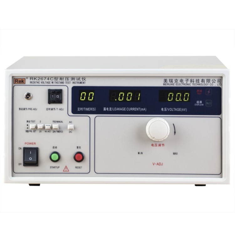 美瑞克RK2674系列耐壓測試儀是測量耐壓強度的儀器,可以直觀、準確、快速地測試各種被測對象的擊穿電壓、漏電流等電氣安全性能指標(biāo),并可以作為高壓源用來測試元器件和整機性能。
