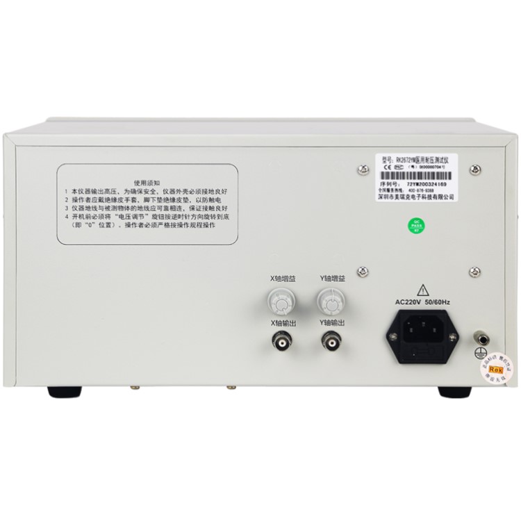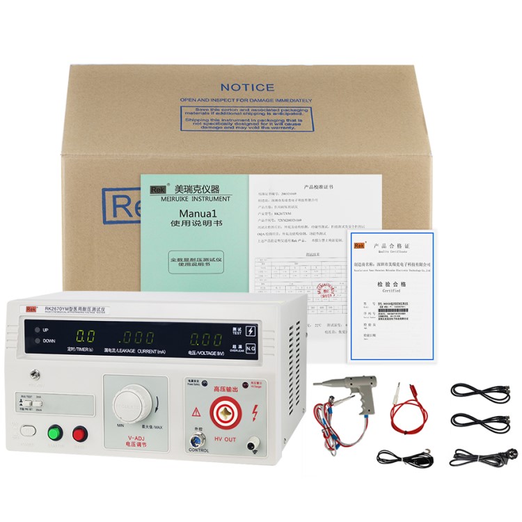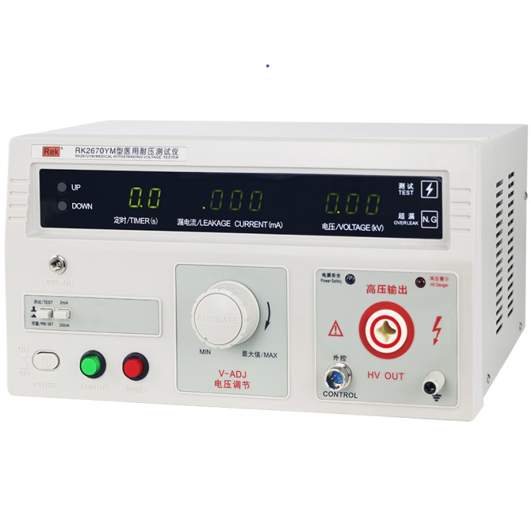 RK2670YM/RK2672YM醫(yī)用耐壓測試儀具有常規(guī)耐壓側(cè)儀所有的功能外,增加了電?。ㄩW絡(luò))偵測功能,通過外接示波器,可以直觀、準確、快速、可靠的檢測到被測電氣設(shè)備的“閃絡(luò)”現(xiàn)象,被測電氣設(shè)備無“閃絡(luò)”現(xiàn)象時,示波器顯示一個穩(wěn)定的“李沙育圖形(即一個閉合的圓環(huán))”,若被測電氣設(shè)備發(fā)生“閃絡(luò)”現(xiàn)象,則李沙育圖形的邊緣會出現(xiàn)較大的電氣設(shè)備發(fā)生“閃絡(luò)”現(xiàn)象以保證被測電氣設(shè)備的安全。本產(chǎn)品同時也適合需要檢測“閃絡(luò)”缺陷各種電氣設(shè)備等,是醫(yī)用電氣設(shè)備制造商、維修部門、使用單位以及產(chǎn)品質(zhì)量檢測部門、技術(shù)監(jiān)督部門不可少的耐壓測試儀。