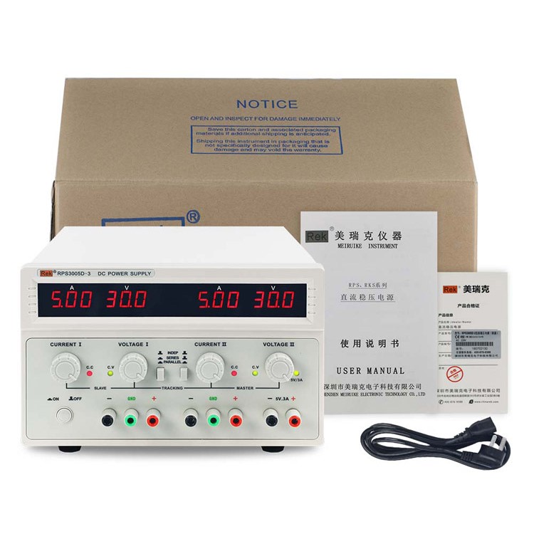 RPS系列雙路直流穩(wěn)壓電源是專門為實驗室、學校和生產線的使用而設計,其輸出電壓和輸出負載電流都可在0和標稱值之間連續(xù)可調。且具有限流保護功能及自帶一個5.0V/3A固定輸出。電源的穩(wěn)定度和紋波系數都非常好,且有完善的保護電路。本系列電源是采用優(yōu)質變壓器的線性穩(wěn)壓電源,穩(wěn)定度高,紋波極小,噪音干擾低,精準可靠,可滿負載長時間輸出,是科研單位,實驗室,工廠生產線不可或缺的儀器設備!